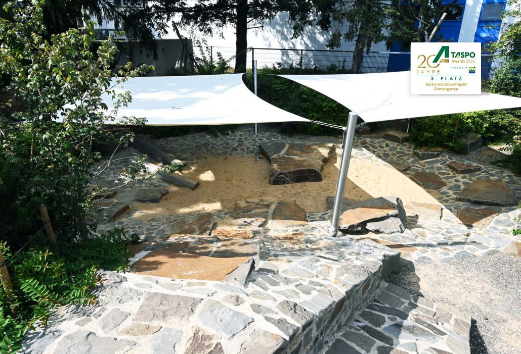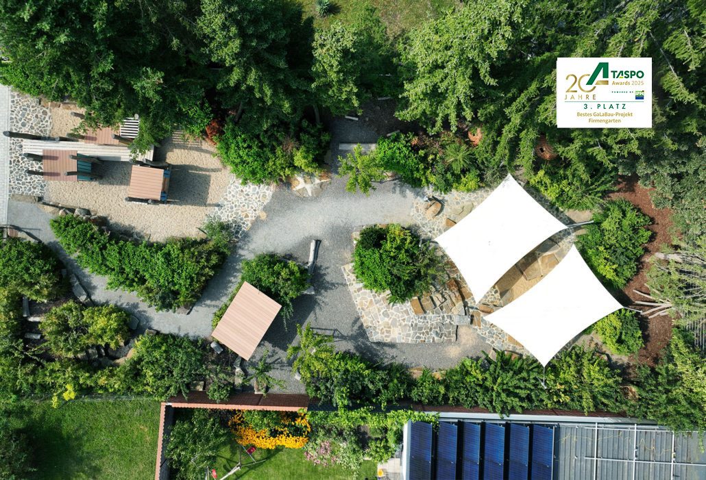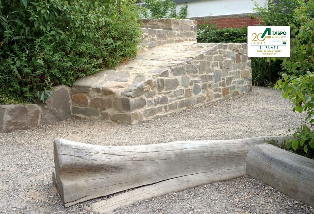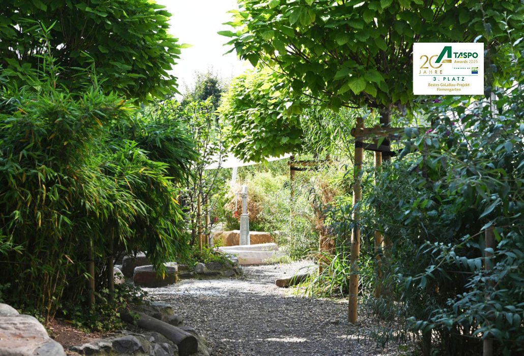Dieses Projekt gehört zu den Finalisten des TASPO Awards in der Kategorie ‚Bestes GaLaBau-Projekt Firmengarten‘.