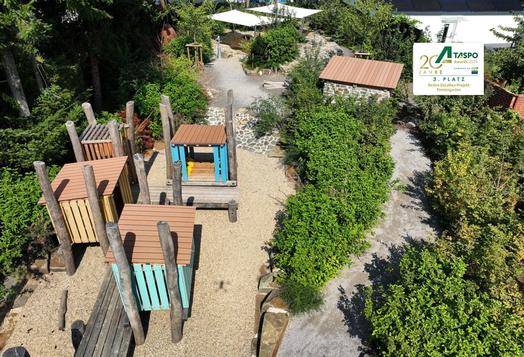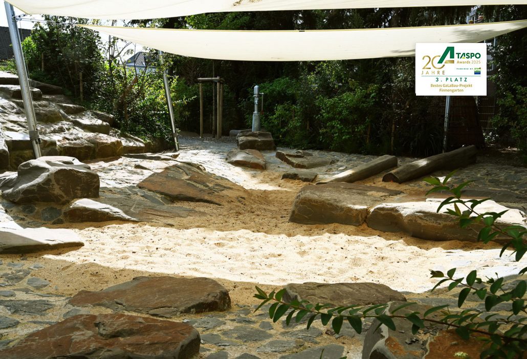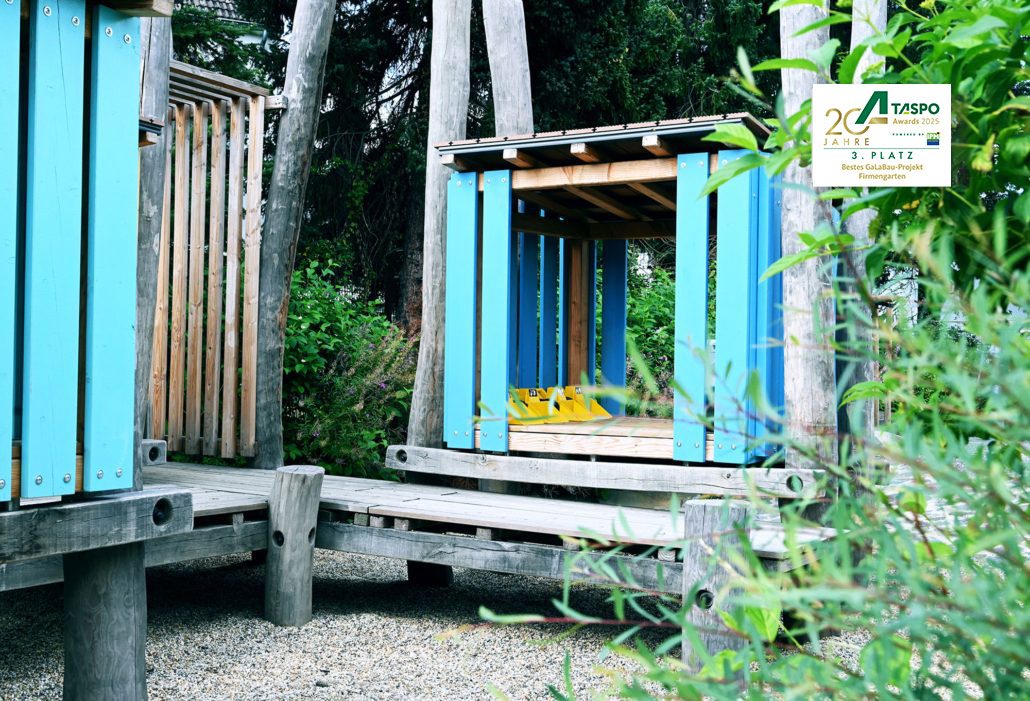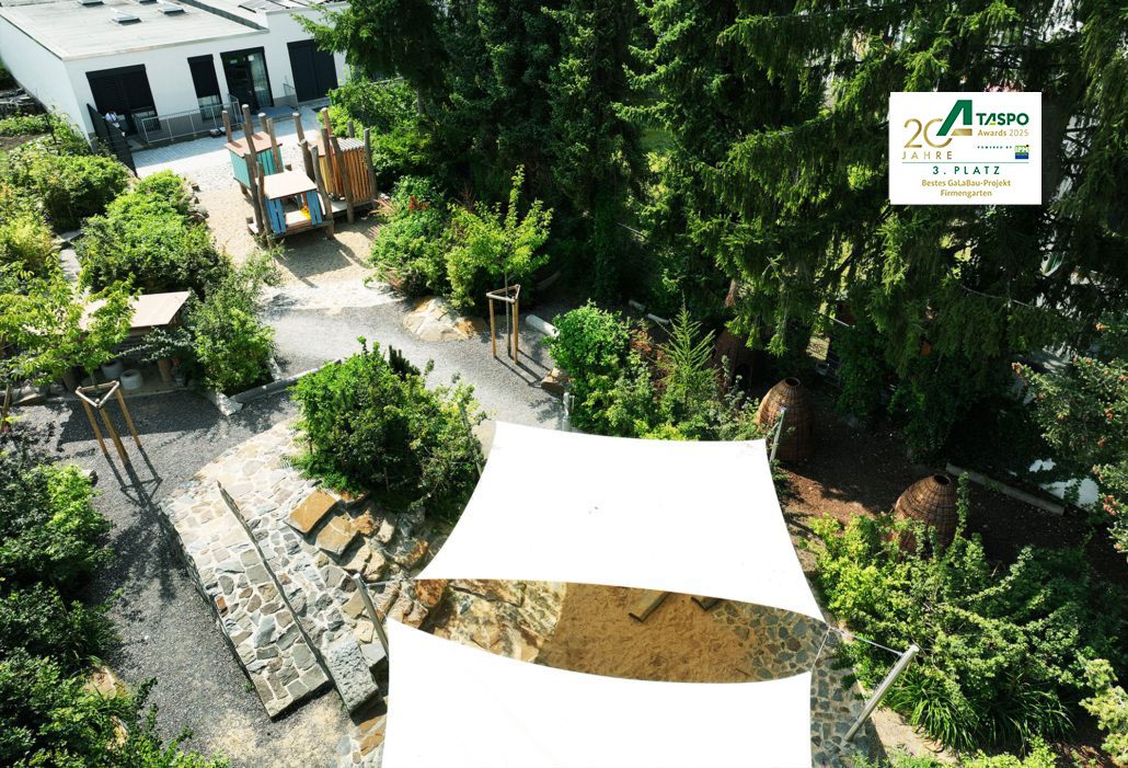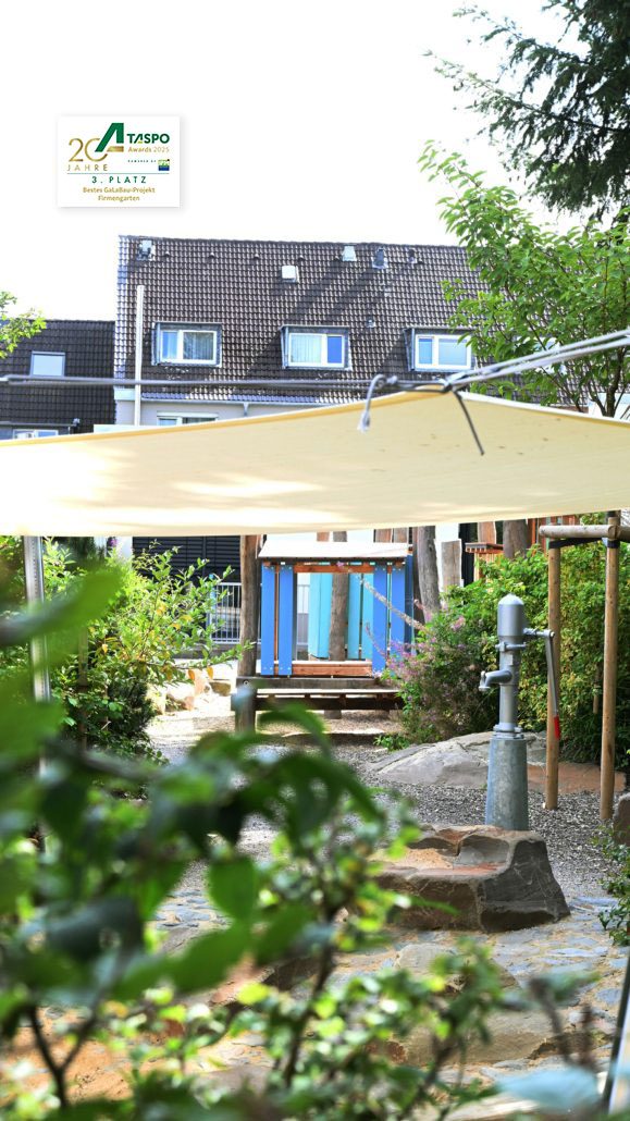Dieses Projekt gehört zu den Finalisten des TASPO Awards in der Kategorie ‚Bestes GaLaBau-Projekt Firmengarten‘.